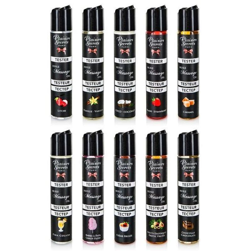 Ulja za masažu su vrhunskog kvaliteta i dostupna u više opojnih aroma, koje će probuditi vaša čula i učiniti erotski doživljaj potpuno opijajućim. Isprobajte naše tester ulja za masažu i odaberite omiljenu aromu koja će vas voditi u svet nezaboravnih senzacija.